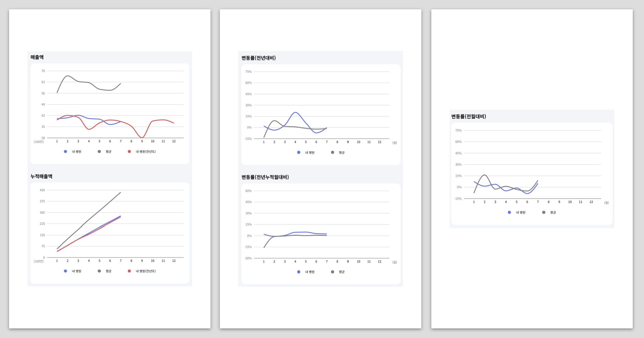 를 통해 다른 병원의 매출 변화를 한눈에 직관적으로 파악할 수 있습니다.